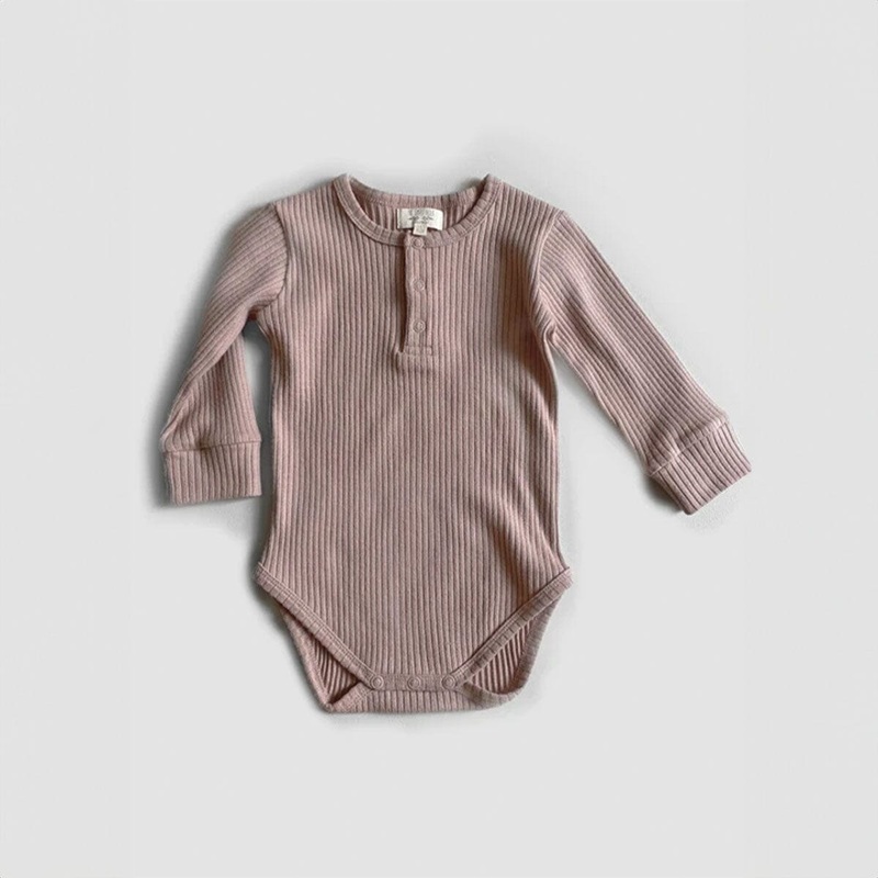 The Simple Folk's lightweight, ribbed long-sleeve onesie is luxuriously soft and perfect for lounging, layering, and exploring. It features three snaps down the front, crotch snaps, and the dreamiest ribbed organic cotton you will ever touch. Make it a set
