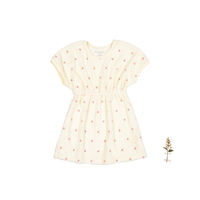 This sweet terry dress has an elastic at the waist. Perfect for the beach playground or casual city stroll.