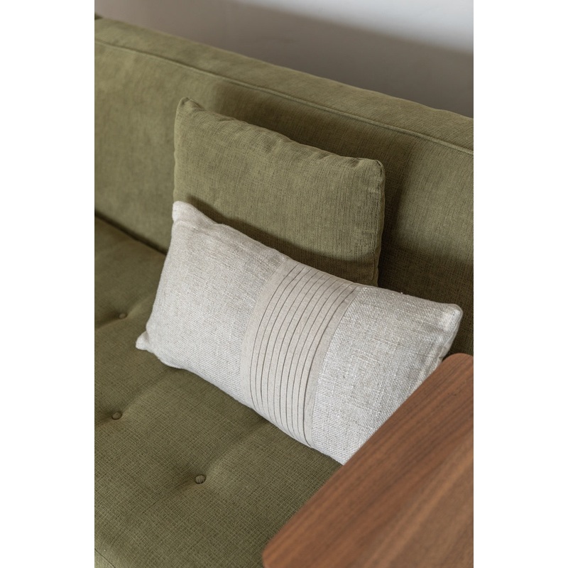 As normal as this pillow looks, I think she could probably teach us a thing or two. Like linen blend in natural color can make as much of a statement as bright colors + patterns. Also, lumbar pillows are life. This one can handle being paired with warm or