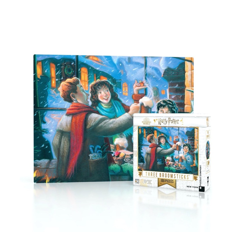 Hogsmeade village is the perfect getaway for young wizards and witches to escape the rigors of the classroom. Enjoy a butterbeer served by none other than Madame Rosemerta at the Three Broomsticks along with Harry Potter, Ron Weasley and Hermione Granger in this 100 piece mini puzzle illustrated by original book cover artist, Mary GrandPr. At 9 x 7 once completed our mini puzzles are great for plane rides, coffee tables, or even just to stick in your pocket in case you find yourself with a bit of time on your hands. Made in the USA from recycled chipboard.