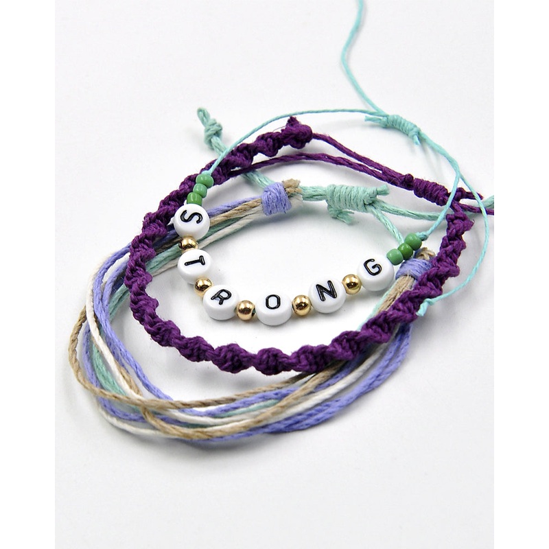 Each set, available in 6 different styles, comes with 3 color coordinated macram bracelets that can be worn individually or layered.