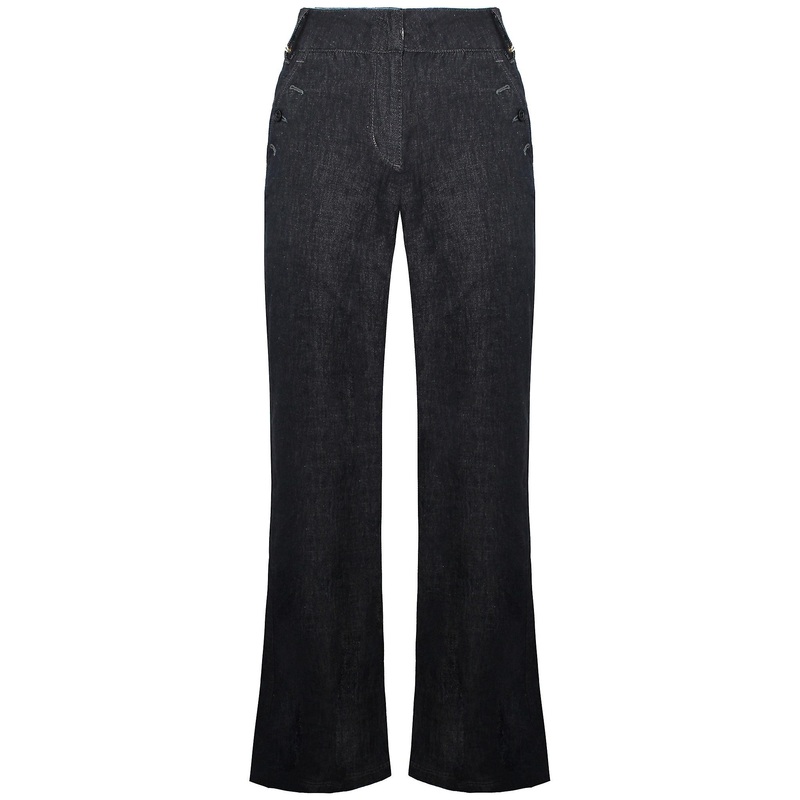 Description Timberland Wide Leg Relaxed Chambray Navy Blue Womens Linen Pants A0597 440