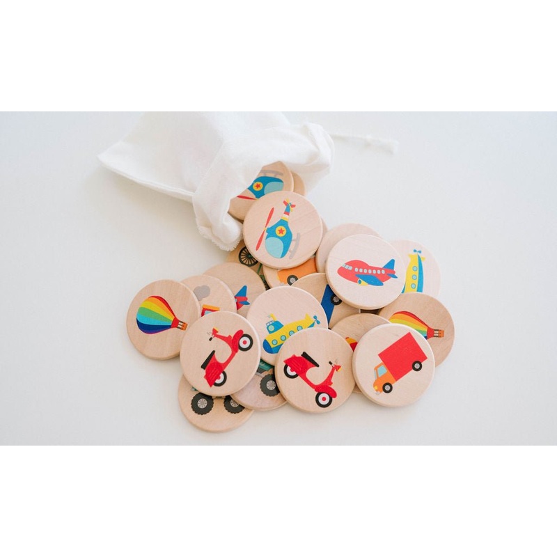 We can go by car, bike, plane or boat. It really doesn’t matter how, let’s just GO! Transportation comes in many different styles and you can explore many of them with our Transportation Matching Tiles. It consists of 12 different modes of transportation on 24 wooden tiles. It can be enjoyed solo or with the entire family – teaching kids to take turns and share with others. Our wooden matching tiles will also promote short term memory skills.