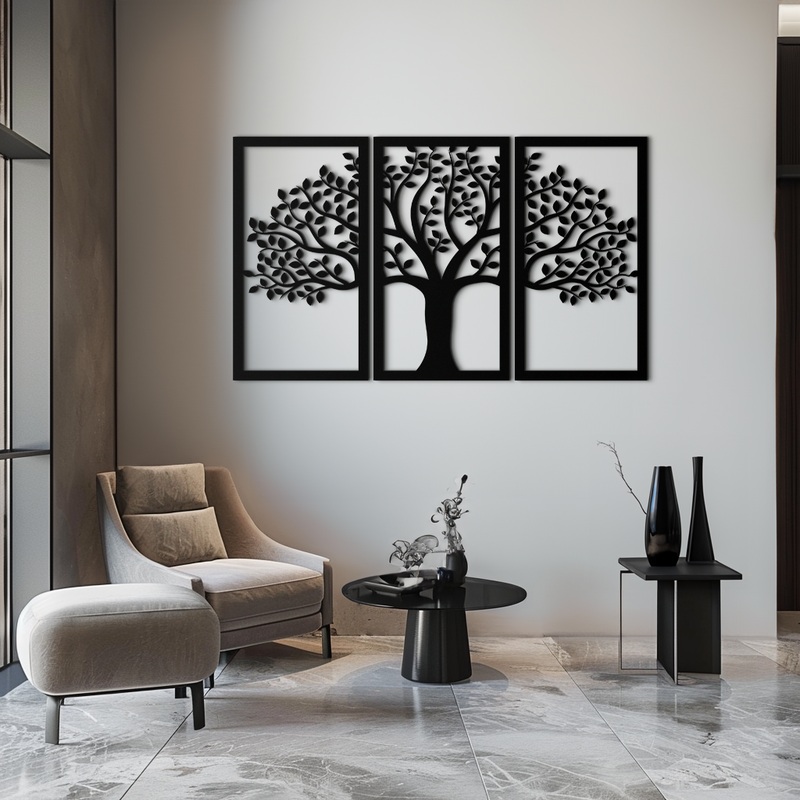 Embrace the beauty of nature and balance with this 3-Panel Tree of Life Metal Wall Art. The symmetrical design of branches extending across three panels creates a timeless and elegant statement piece, perfect for modern, bohemian, and minimalist interiors.