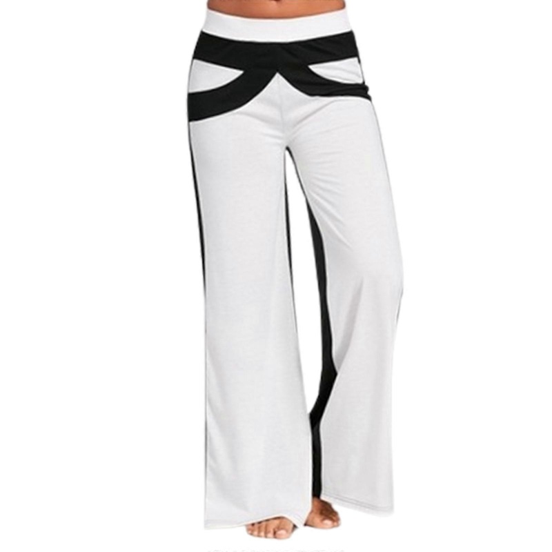 Description Features: Brand new and high quality Make a fashion statement with these trendy color block wide leg pants for women. The unique design and stylish colors will surely catch everyone's attention. Crafted from quality cotton blend fabric, these p