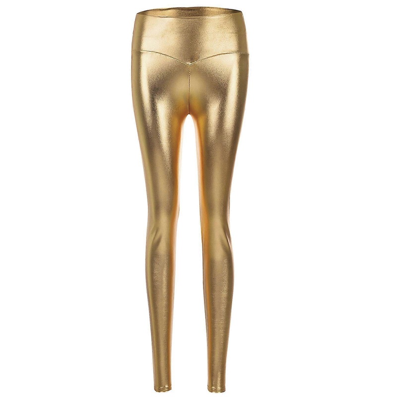 Trendy Glossy Faux Leather 9/10 Pants For Women Slimming Effect And Comfortable Wear For Everyday Outfits Gold L | Fruugo SG
