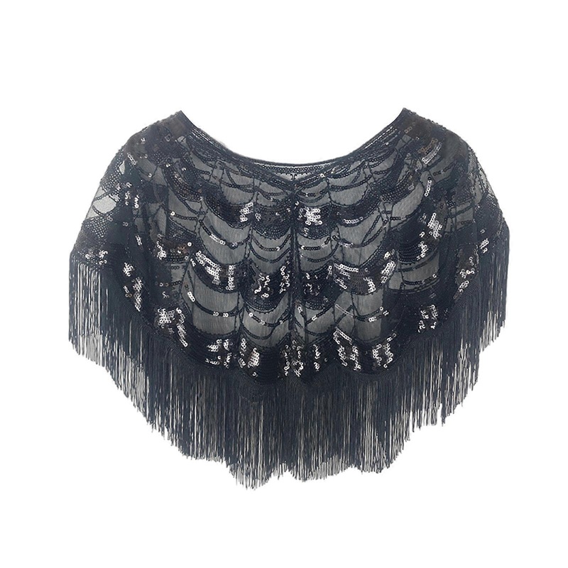 Triangles Sequins Shawls Evening Dresses with Tassels Meshes Wedding Shawls for Ladies Costume Accessories Black | Fruugo SG