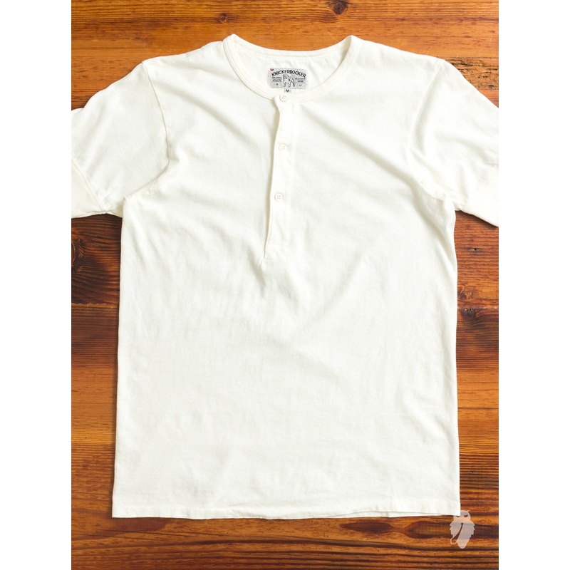 • The tube knit henley from Knickerbocker is the New York brand’s interpretation of the iconic sportswear undergarment. Built on early 1900s machinery, the henley is woven using vintage tubular knit construction for a seamless body and a sturdier feel. The shirt comes pre-washed and fitted with blind-stitch hems, double-needle cover-stitched collar, and placket backing.