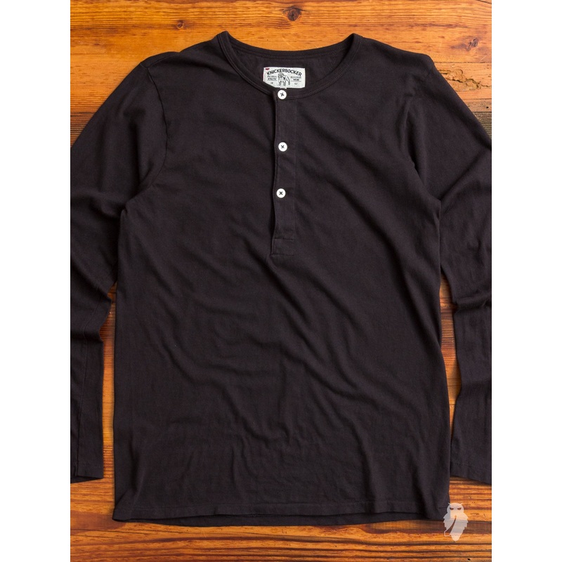 • The tube knit henley from Knickerbocker is the New York brand’s interpretation of the iconic sportswear undergarment. Built on early 1900s machinery, the henley is woven using vintage tubular knit construction for a seamless body and a sturdier feel. The shirt comes pre-washed and fitted with blind-stitch hems, double-needle cover-stitched collar, and placket backing.