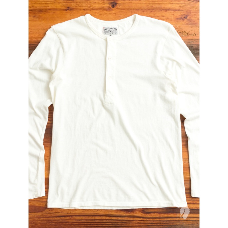 • The tube knit henley from Knickerbocker is the New York brand’s interpretation of the iconic sportswear undergarment. Built on early 1900s machinery, the henley is woven using vintage tubular knit construction for a seamless body and a sturdier feel. The shirt comes pre-washed and fitted with blind-stitch hems, double-needle cover-stitched collar, and placket backing.