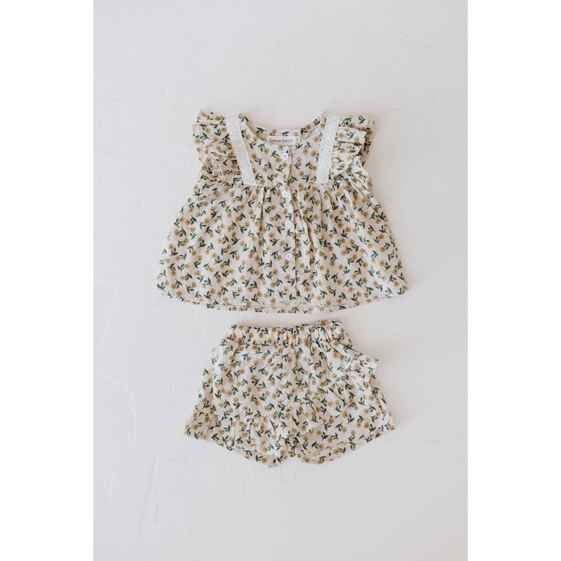 Featuring delicate yellow tulips, this skort set is perfect for your little one. The versatile design of a skirt and shorts provides comfort and convenience for your busy kiddo!Sizes Available : 3 Months - 3 YearsMaterial : 100% CottonTo ensure your new ff