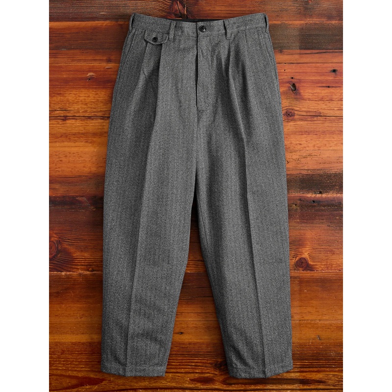 DetailsSizingBrand InfoPulling from early 1900s casual suiting, these pleated trousers come cut in a relaxed fit silhouette sewn using a poly herringbone twill fabric. The pants sport a medium-weight heft and soft-to-touch brushed surface texture. Fitted w