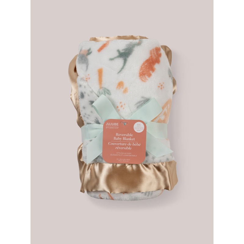 With ultra-soft, thick fabric and a silky satin trim, the double-layered Reversible Baby Blanket from JuJuBe Studio Oh! is a plush addition to any nursery. Each side displays a soothing, pastel color palette with adorable coordinating patterns, such as sweet cherries and dots and cowboy boots and lucky horseshoes. Machine washable with a comfortable, durable construction, these luxurious reversible blankets measure 30 by 40 inches (76.2 cm 101.6 cm) and are ideal for keeping warm around the house or on the go and for tummy time on the floor.