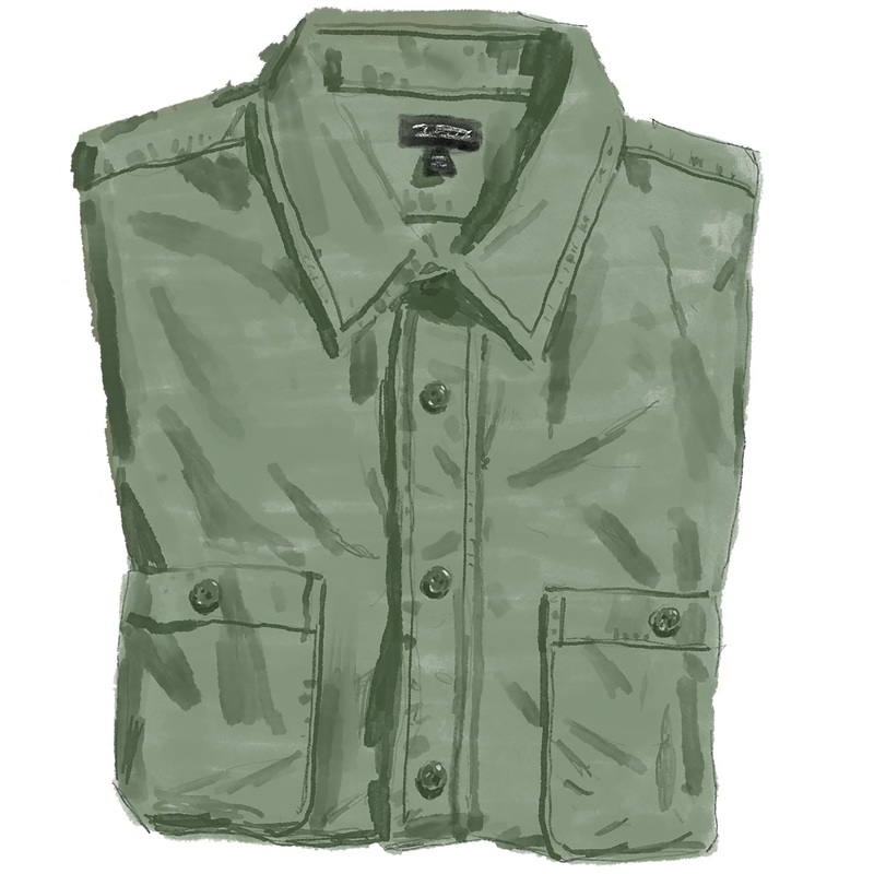 USN Poplin Deck Shirt (No. 6634). An authentic recreation of the original U.S. Navy deck shirt, the lightweight standard uniform shirting of the U.S. Navy in the 1940s. In 100% Japanese cotton poplin. Military-grade two-hole poly workwear buttons. Two patch pockets. Bound cuff placket. Imported.