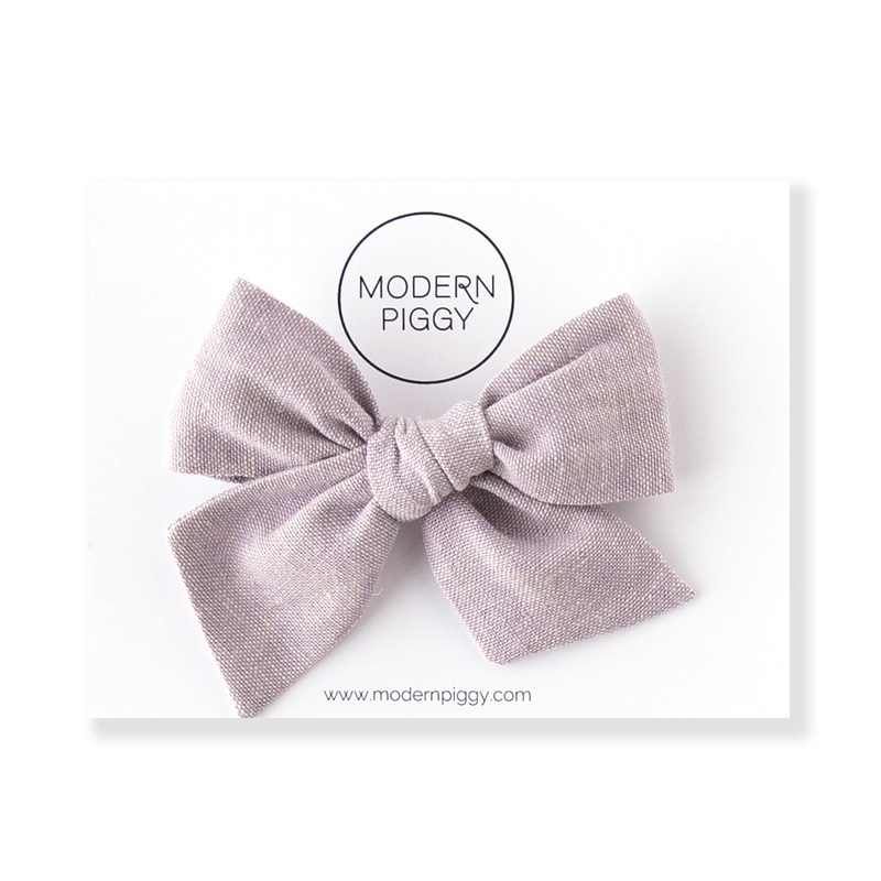 A sweet and simple hand-tied bow made out of a high-quality, cotton fabric.Each bow measures approximately 4.5" x 2.5"and is handmade with love.Three different style options:1) Alligator clip - Best option for your older babes. The silver metal clip can ea