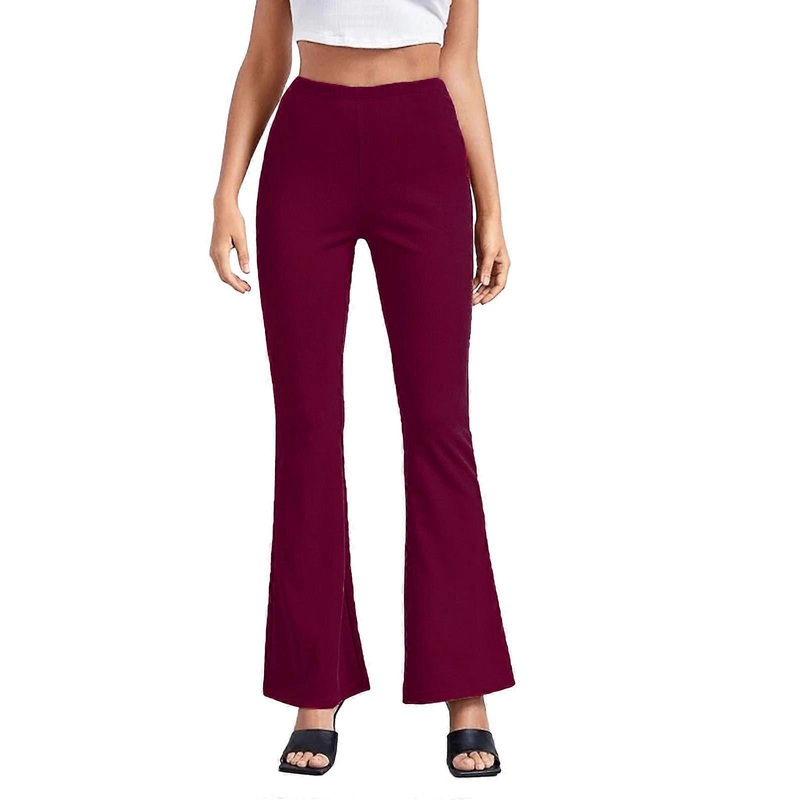 Versatile Solid Color Flared Bottom Trousers Stretch Slim Fit Pants High Waist for Fashion Individuals Burgundy XL | Fruugo SG