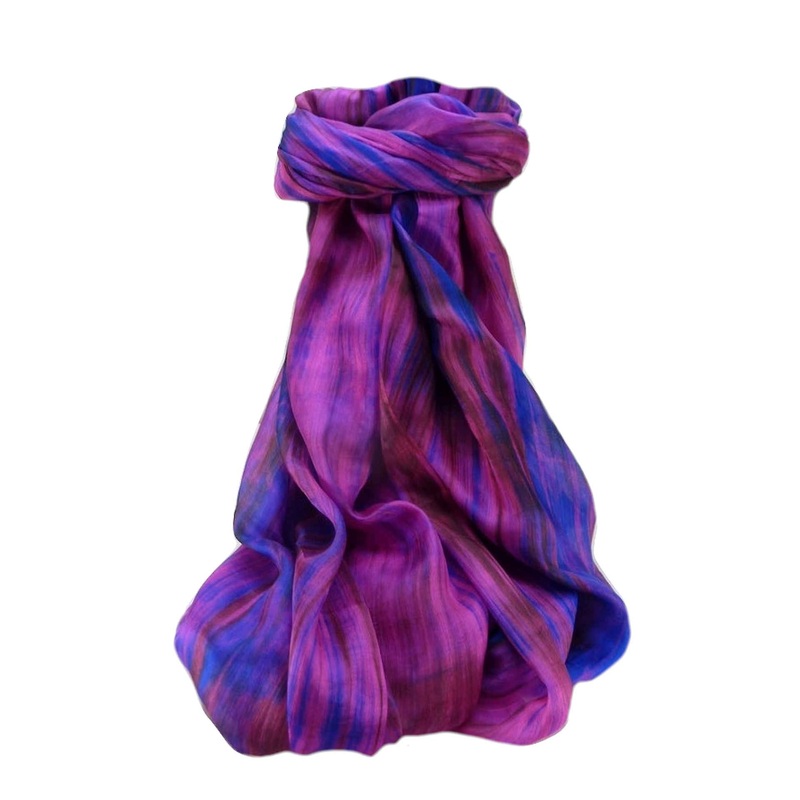 The mulberry silk is skilfully spun into an extremely fine yarn to form a closely woven, hand painted, gossamer thin fabric that drapes well, has a subtle sheen, and retains the charming irregularities of its natural texture.