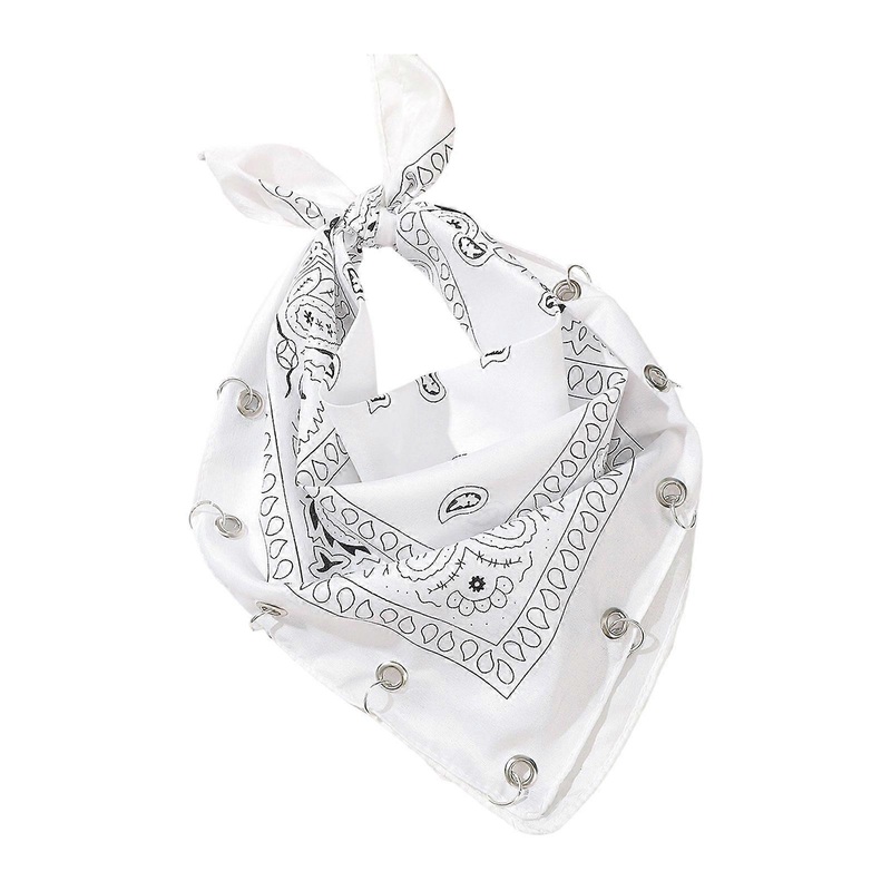 Vintage Style Cotton Square Scarf Kerchief Featuring Metal Rings Attachments For Bags White | Fruugo SG