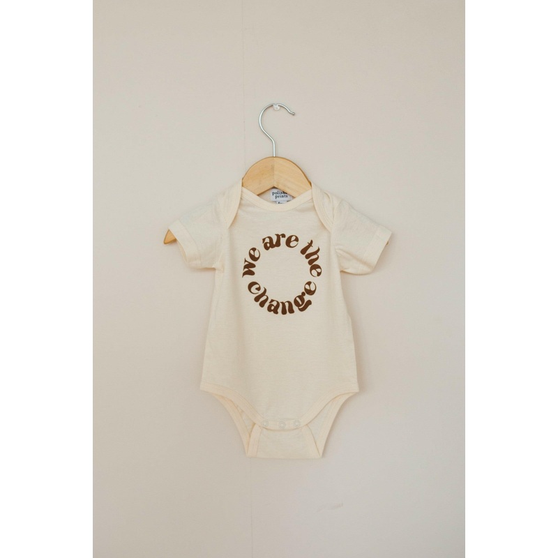 We Are The ChangeBaby BodysuitEach generation has the power to flip the script, to make it different and to create a better world. We are the change we've been waiting for.Here are some fun facts:Made with 100% organic cotton fabricWill shrink about 3% if