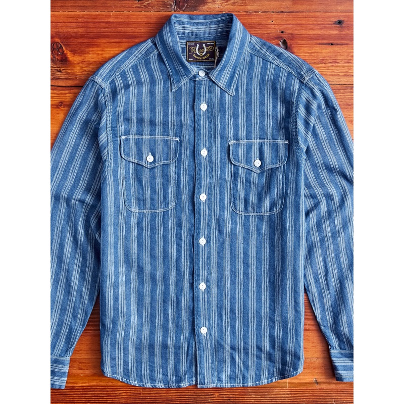 • The WellsWork Shirt from Freenote makes use of classic workwear details, accented with a touch of western flair.This iteration is sewn using an indigo dyed denim fabric sourced from Japan.The lightweight shirt is fitted with two oversized utility pockets, large enough to store a variety of tools or gadgets. Finished with double needle stitching and customcorozo buttons.