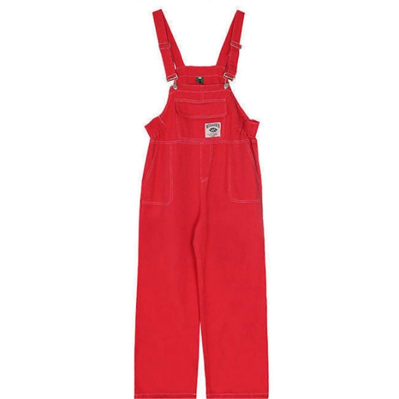 Wide Leg Overalls for Women Loose Fit Vintage High Waist Straight Trousers Pants Denim Red L | Fruugo SG