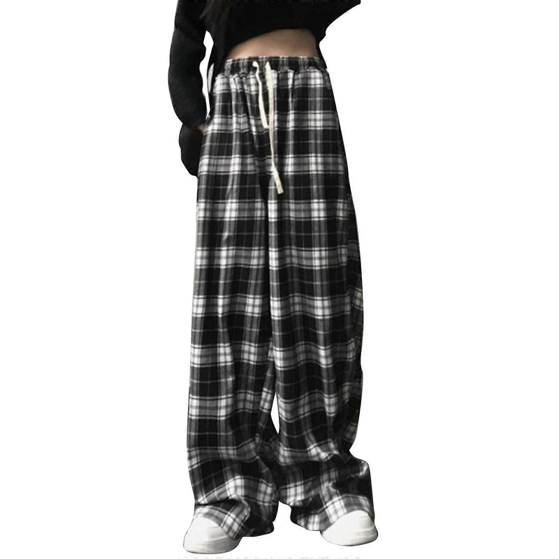 Wide Leg Pants Womens Teens Summer Fall Trendy Harajuku Plaid High Waist Oversized Loose Trousers Streetwear with Pocket XL | Fruugo SG