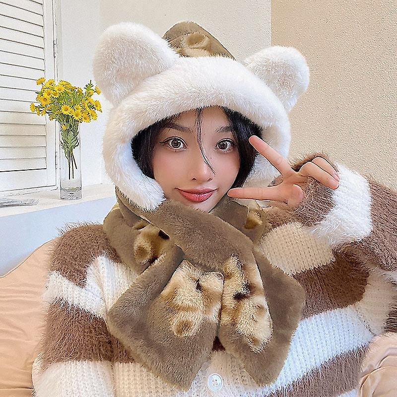 Winter Korean Style Cute Bear Hat Three-piece Set Thick Windproof Warm Scarf Three-piece Set One-piece Hat | Fruugo SG