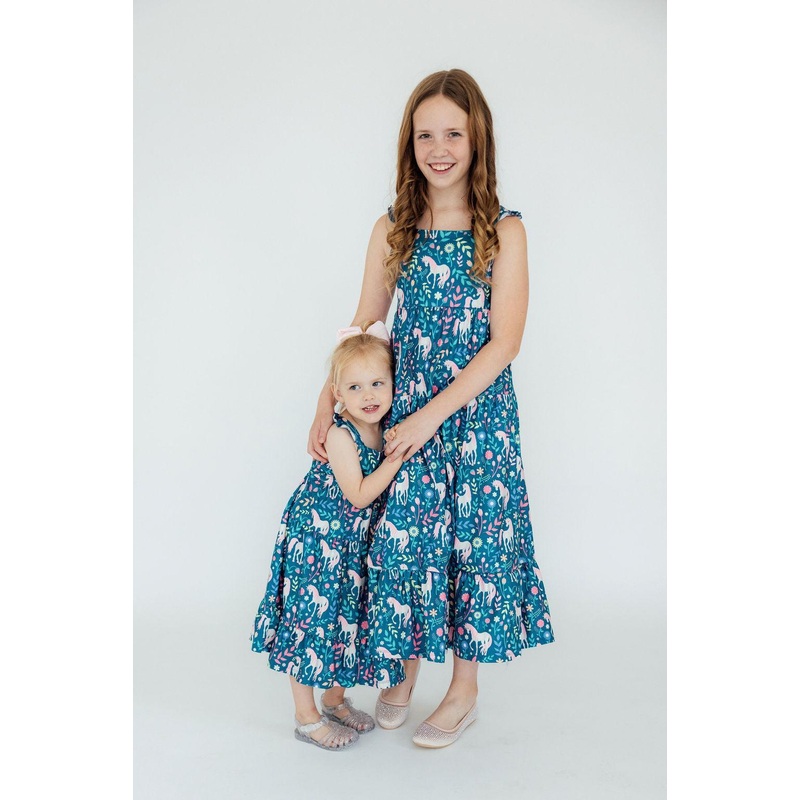 Our Maxi Dress is perfect for summer! Back has a cute cutout and straps are finished off with a sweet ruffle on the shoulder. Super soft fabric stays bright wash after wash.