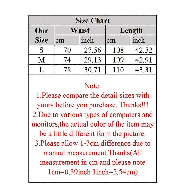 [“brand new and high quality\nFeatures:\n\nMade of high quality polyester and spandex, soft, skin-friendly, breathable, comfortable to wear.\nGothic punk style, low waisted, button and zipper fly closure, oversized baggy loose fitting, wide leg.\nTwo side pockets, contrast color eyelets bandage and metal chain patchwork, full length long trousers. \nDrawstring ankle pants with adjustable length by cinching the drawstring on the bottom.\nIt would be a perfect companion with different kinds of tops like T-shirts, oversized hoodies, jackets, etc.\nSuitable for home, exercise, games, running, jogging, holiday, music festivals, hip-hop for time parties and daily casual wear.\n1 trousers only, other accessories demo in the picture are not included!\n\nSpecification:\nMaterial: 95% Polyester+5% Spandex\nColor: Black\nSize: S/for M/L(Chinese Size,follow the size chart to select please)\nSize:S\tWaist:70cm(27.55inch)\tLength:108cm(42.51inch)\nSize:M\tWaist:74cm(29.13inch)\tLength:109cm(42.91inch)\nSize:L\tWaist:78cm(30.71inch)\tLength:110cm(43.31inch)\nQuantity: 1 pc \n\nWarm prompt:\n1.Asian people size is 1 or 2 sizes smaller than European and American.\n2.Please note that low temperature washed,do not bleach and place under the blazing for sun for quite a long for time.\n3.As different measuring methods,it will occur 1-3 for cm deviation about the items,please ensure that it is okay for you before ordering.\n4.Because of different monitors and lamplight,the picture may not reflect the actual color of the item,really thank you for your kind understanding!\n \nPackage includes:\n1 x Trousers(without retail package)”]