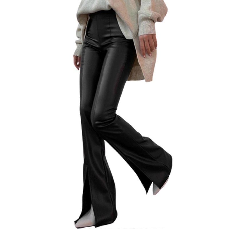 Features: Enhances your wardrobe with our womens flare split sexy tight flared leathers pants.