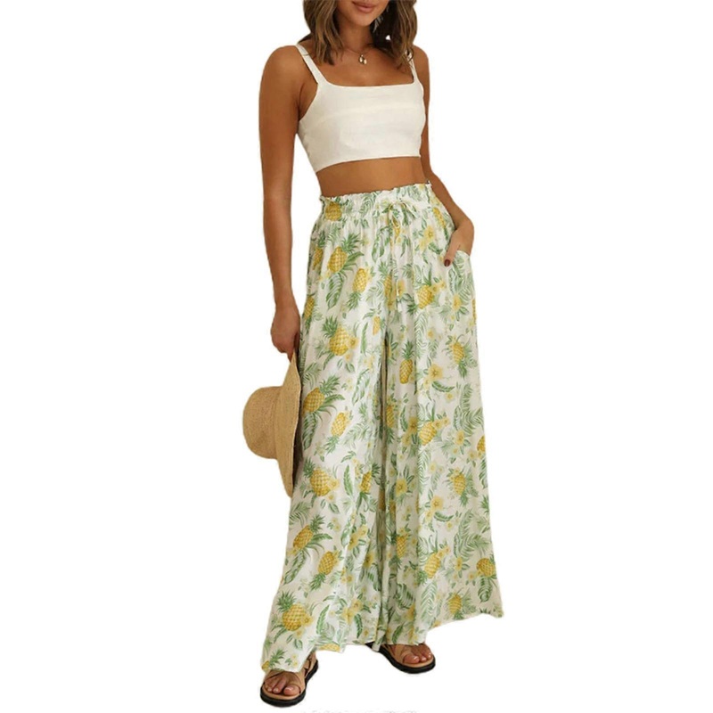 Women Casual Floral Print Belted Summer Beachweaer High Waist Wide Leg Pants pineapple print XL | Fruugo SG