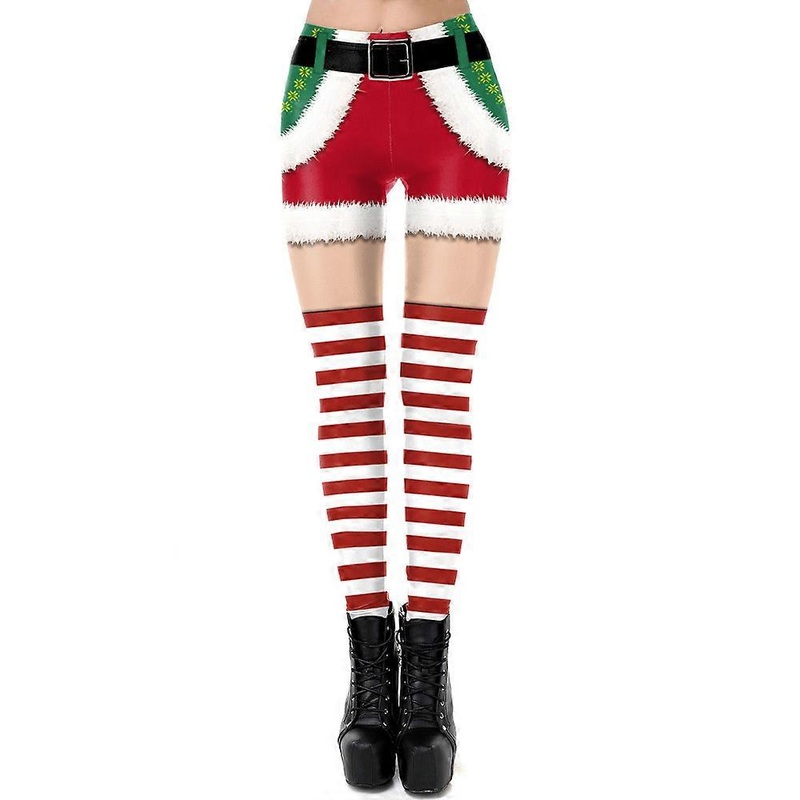 Women Christmas Xmas 3D Santa Elf Leggings Yoga Fitness Bottoms Pants Trouser