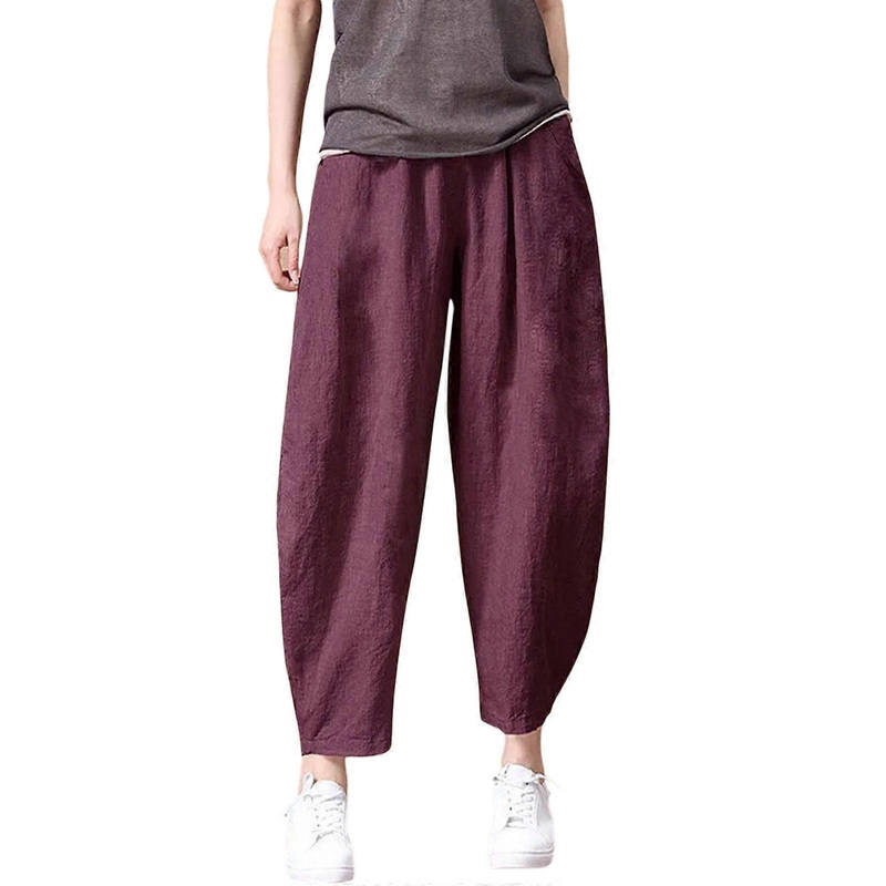 Women Cotton Linen for Capri Baggy Cropped Harem Pants Solid Color Beach Trouser Jujube S | Fruugo SG