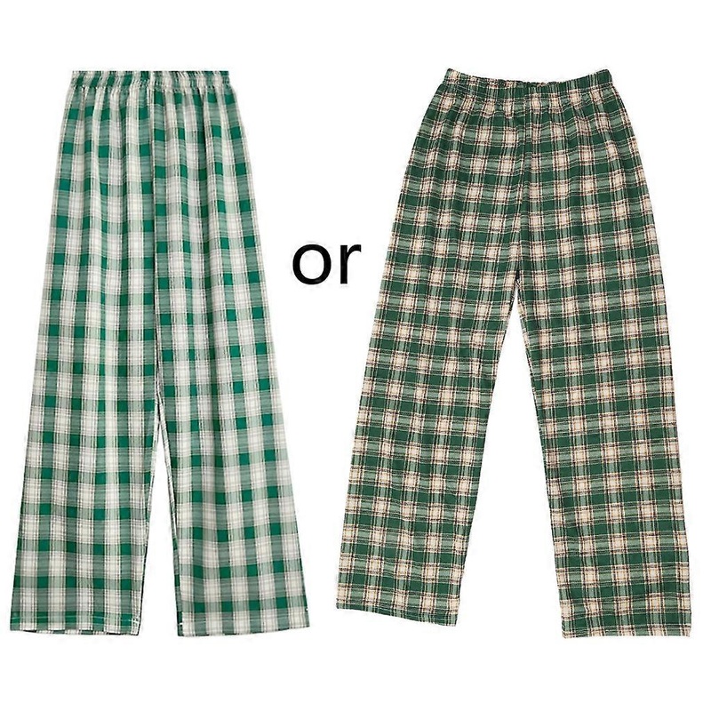 Description brand new and high quality Features: Made of high quality polyester, soft, lightweight, breathable, very durable and comfortable. Wide leg, high waisted, wide elastic waistband, loose fitting, two side pockets. Vintage plaid printed, straight p