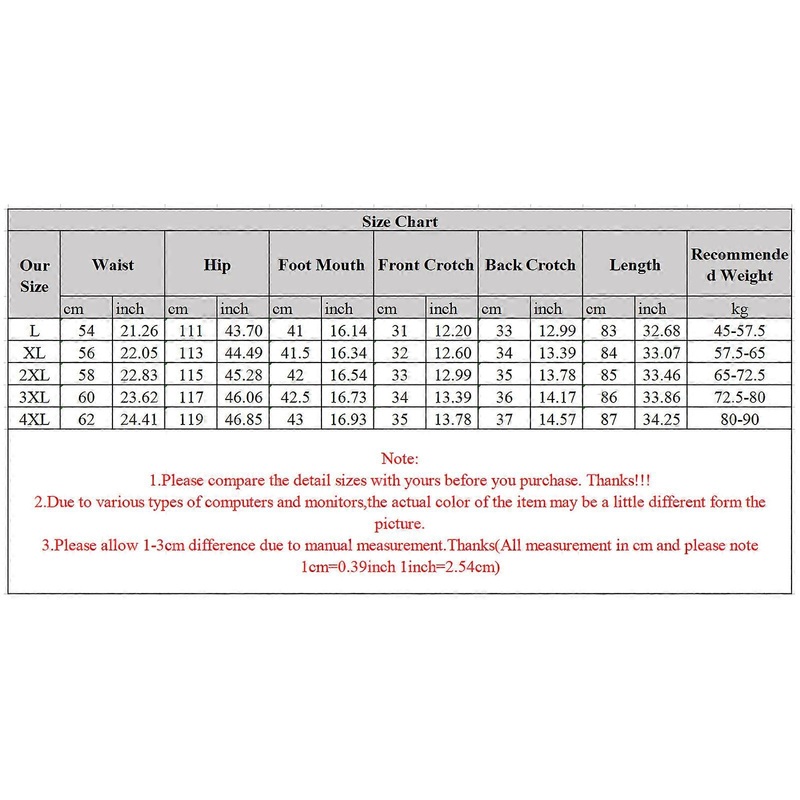 [“brand new and high quality\nFeatures:\n\nMade of high quality cotton material, lightweight, skin-friendly, soft, cozy, and comfortable.\nElastic waist makes it is easy to pull on, vintage style, simple solid color, for capri casual pants.\nWide leg trousers, loose fitting, fit all body types, two side pockets for convenience, nice for lounging. \nYou can choose to roll up the cuffs or not, different stylish look. Suit for spring summer, and early fall.\nMatch with your sweatshirt, crop top, camisole, t-shirt, blouse for jacket, coat, sweater, sandals, sneakers, etc.\nLoose style, suit for home wear, relaxing, outdoor, casual, party, date, beach and any other occasion.\n1 trousers only, other accessories demo in the picture are not included!\n\nSpecification:\nMaterial: Cotton\nOptional Color: Black, Wine Red, Linen Color, for Camel\nSize: L/XL/2XL/3XL/4XL(Chinese Size,follow the size chart to select please)\nSize:L\tWaist:59cm(23.22inch)\tHip:108cm(42.51inch)\tFoot Mouth:41cm(16.14inch)\tFront Crotch:31cm(12.20inch)\tBack Crotch:33cm(12.99inch)\tLength:88cm(34.64inch)\tRecommended Weight:45kg-57.5kg\nSize:XL\tWaist:61cm(24.01inch)\tHip:120cm(47.24inch)\tFoot Mouth:41.5cm(16.33inch)\tFront Crotch:32cm(12.59inch)\tBack Crotch:34cm(13.38inch)\tLength:89cm(35.03inch)\tRecommended Weight:57.5kg-65kg\nSize:2XL\tWaist:63cm(24.80inch)\tHip:122cm(48.03inch)\tFoot Mouth:42cm(16.53inch)\tFront Crotch:33cm(12.99inch)\tBack Crotch:35cm(13.77inch)\tLength:90cm(35.43inch)\tRecommended Weight:65kg-72.5kg\nSize:3XL\tWaist:65cm(25.59inch)\tHip:124cm(48.81inch)\tFoot Mouth:42.5cm(16.73inch)\tFront Crotch:34cm(13.38inch)\tBack Crotch:36cm(14.17inch)\tLength:91cm(35.82inch)\tRecommended Weight:72.5kg-80kg\nSize:4XL\tWaist:67cm(26.37inch)\tHip:126cm(49.61inch)\tFoot Mouth:43cm(16.92inch)\tFront Crotch:35cm(13.77inch)\tBack Crotch:37cm(14.56inch)\tLength:92cm(36.22inch)\tRecommended Weight:80kg-90kg\nQuantity: 1 pc \n\nWarm prompt:\n1.Asian people size is 1 or 2 sizes smaller than European and American.\n2.Please note that low temperature washed,do not bleach and place under the blazing for sun for quite a long for time.\n3.As different measuring methods,it will occur 1-3 for cm deviation about the items,please ensure that it is okay for you before ordering.\n4.Because of different monitors and lamplight,the picture may not reflect the actual color of the item,really thank you for your kind understanding!\n \nPackage includes:\u007F\n1 x Trousers(without retail package)”]