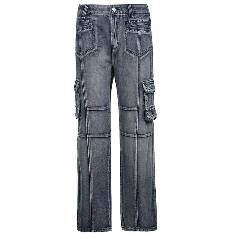 Women Gothic High Waist Cargo Jeans Harajuku Vintage Washed Striped Multi Pockets Denim Pants Slim Straight Trousers S | Fruugo SG