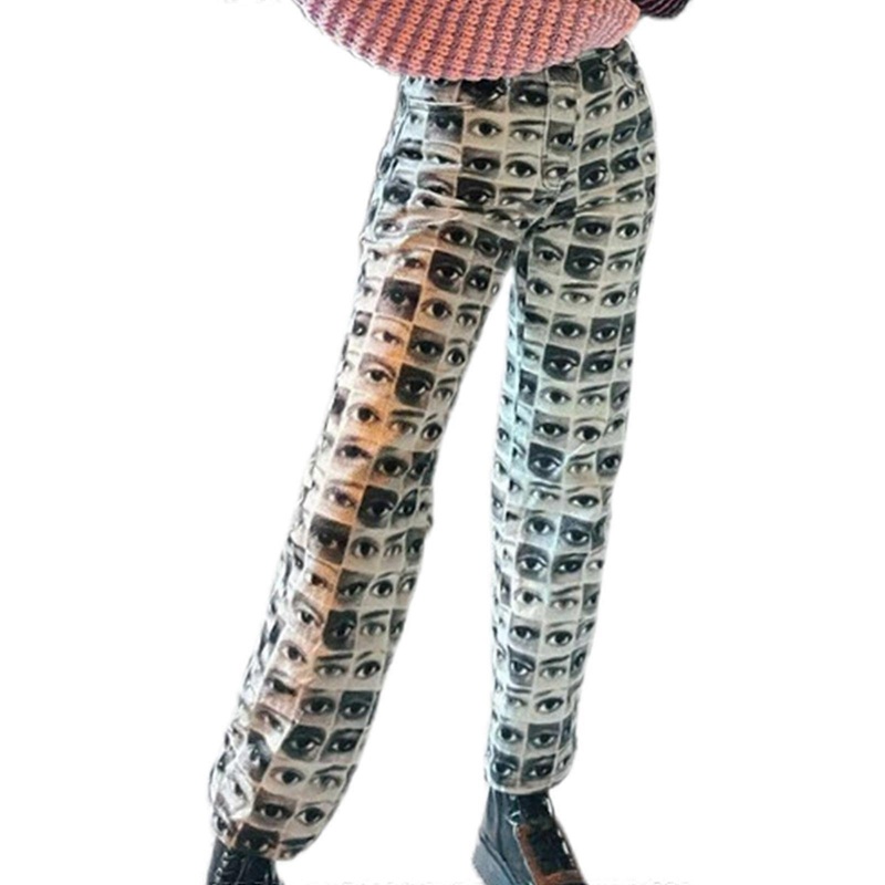 [“brand new and high quality\nFeatures:\nMade of high quality polyester material, soft, skin-friendly, durable, breathable and comfortable to wear.\nHigh waisted, classic button and zipper fly closure, two front and two back pockets, slim fitting.\nStraight leg full length long pants, look good-shaped, eyes graphic pattern 3D digital printing.\nIt would be a perfect companion with different kinds of tops like T-shirts, oversized hoodies, jackets, etc.\nGreat for casual, daily, vacation, office, parties, cocktail, dancing, night club, bar, night out, and any occasions you want it for.\n1 trousers only, other accessories demo in the picture are not included!\n\nSpecification:\nMaterial: Polyester\nColor: Black+White\nStyle: street\nType: straight pants\nWaist type: high waist\nSize: S/for M/L(Chinese Size,follow the size chart to select please)\nSize:S\tWaist:68cm(26.77inch)\tHip:88cm(34.64inch)\tThigh:54cm(21.25inch)\tLength:101cm(39.76inch)\nSize:M\tWaist:72cm(28.34inch)\tHip:92cm(36.22inch)\tThigh:56cm(22.04inch)\tLength:102cm(40.15inch)\nSize:L\tWaist:76cm(29.92inch)\tHip:96cm(37.79inch)\tThigh:58cm(22.83inch)\tLength:105cm(41.33inch)\nQuantity: 1 pc \n\nWarm prompt:\n1.Asian people size is 1 or 2 sizes smaller than European and American.\n2.Please note that low temperature washed,do not bleach and place under the blazing for sun for quite a long for time.\n3.As different measuring methods,it will occur 1-3 for cm deviation about the items,please ensure that it is okay for you before ordering.\n4.Because of different monitors and lamplight,the picture may not reflect the actual color of the item,really thank you for your kind understanding!\n \nPackage includes:\u007F\n1 x Trousers(without retail package)”]
