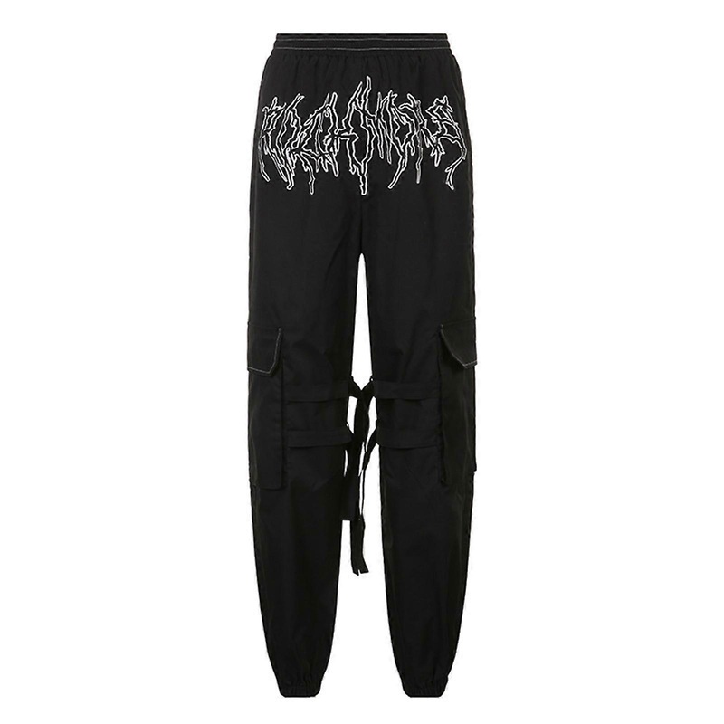 [“Description: \n\nFeatures:\nbrand new and high quality\nHigh waisted, elastic waistband, stay in place, cover belly well and contour waistline, pull-on closure.\nWide leg, baggy loose fit, elastic ankle, two side flap pockets and multi straps decoration, flame printed.\nMade of high quality polyester material, stretchy, soft and comfortable to wear, skin-friendly, breathable.\nRibbed openings, more thermal and windproof. Match with your sweatshirt, crop top, t-shirt, for jacket, coat, sweater, etc.\nSuitable for home, exercise, games, running, jogging, holiday, music festivals, hip-hop for time parties and daily casual wear.\n1 trousers only, other accessories demo in the picture are not included!\n\nSpecification:\nMaterial: Polyester\nColor: Black\nSize: S/for M/L(Chinese Size,follow the size chart to select please)\nSize:S\tWaist:60cm(23.62inch)\tHip:94cm(37.01inch)\tLength:107cm(42.12inch)\nSize:M\tWaist:64cm(25.19inch)\tHip:98cm(38.58inch)\tLength:109cm(42.91inch)\nSize:L\tWaist:68cm(26.77inch)\tHip:102cm(40.15inch)\tLength:111cm(43.70inch)\nQuantity: 1 pc \n\nWarm prompt:\n1.Asian people size is 1 or 2 sizes smaller than European and American.\n2.Please note that low temperature washed,do not bleach and place under the blazing for sun for quite a long for time.\n3.As different measuring methods,it will occur 1-3 for cm deviation about the items,please ensure that it is okay for you before ordering.\n4.Because of different monitors and lamplight,the picture may not reflect the actual color of the item,really thank you for your kind understanding!\n \nPackage includes:\u007F\n1 x Trousers(without retail package)”]