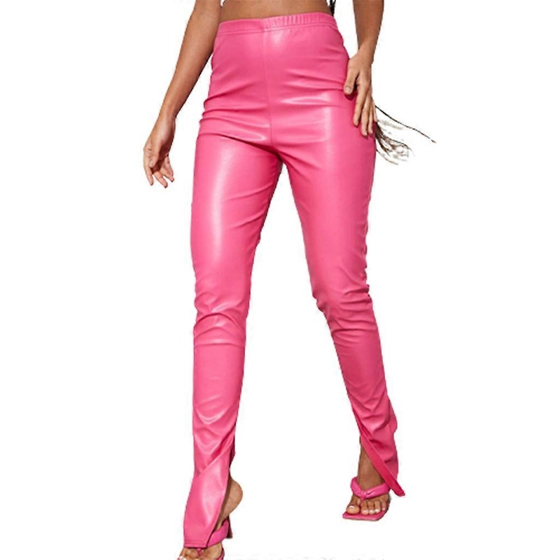 Women High Waist Faux Leather Long Pencil Pants Sexy Ripped Hole Hip Hollow Out Skinny Split Hem Flared Trousers Stretch Leggings Clubwear Rose red S | Fruugo SG