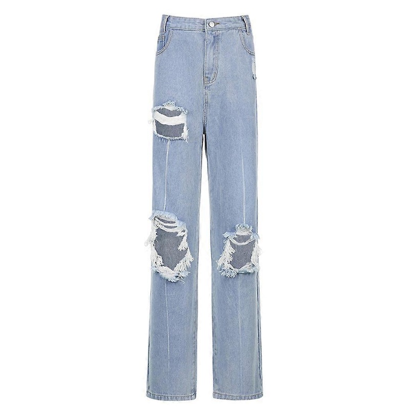 [“Description: \n\nFeatures:\nbrand new and high quality\nHigh-waisted, classic 5 pockets, straight leg long pants, vintage ripped distressed hole design.\nHarajuku hip hop style, zip fly and button closure. Perfectly shows the body curve and makes you look charming.\nHigh waisted fit makes it perfect to pair with crop. Match with for jacket, caot, t-shirt, blouse, sweatshirt, etc.\nMade of high quality cotton materials, skin-friendly, soft and comfortable, breathable.\nPerfect for dating, party, evening club, beach, vacation, casual, daily, holiday, hip hop, and special occasions.\n1 pants only, other accessories demo in the picture are not included!\n\nSpecification:\nMaterial: Cotton\nOptional Color: Black, Blue\nSize: S/for M/L/XL(Chinese Size,follow the size chart to select please)\nSize:S\tWaist:65cm(25.59inch)\tHips:94cm(37.01inch)\tThigh:53cm(20.86inch)\tLength:98cm(38.58inch)\nSize:M\tWaist:69cm(27.16inch)\tHips:98cm(38.58inch)\tThigh:55cm(21.65inch)\tLength:99cm(38.97inch)\nSize:L\tWaist:73cm(28.74inch)\tHips:102cm(40.15inch)\tThigh:57cm(22.44inch)\tLength:100cm(39.37inch)\nSize:XL\tWaist:77cm(30.31inch)\tHips:106cm(41.73inch)\tThigh:59cm(23.22inch)\tLength:101cm(39.76inch)\nQuantity: 1 pc \n\nWarm prompt:\n1.Asian people size is 1 or 2 sizes smaller than European and American.\n2.Please note that low temperature washed,do not bleach and place under the blazing for sun for quite a long for time.\n3.As different measuring methods,it will occur 1-3 for cm deviation about the items,please ensure that it is okay for you before ordering.\n4.Because of different monitors and lamplight,the picture may not reflect the actual color of the item,really thank you for your kind understanding!\n \nPackage includes:\u007F\n1 x Pants(without retail package)”]