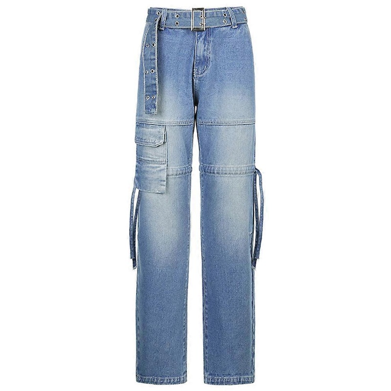 [“Description: \n\nFeatures:\nbrand new and high quality\nMade of high quality cotton and polyester, skin-friendly, durable, soft and comfortable to wear, breathable.\nHigh waisted, zipper and button closure, multi-pockets, gradient blue color, with a double grommets belt.\nBaggy loose fit, 5 pockets, 1 knee flap pocket, 2 back pockets, 2 side pockets, drawstring ribbon design at knee.\nThis high waist jeans is good match with for tank tops, crop tops, shirts, blouse, tees, vest, for jacket, coat and so on. \nPerfect for casual wear, holiday, vocation, work, school, party, dating, club, lounge, daily, and other occasions.\n1 pants only, other accessories demo in the picture are not included!\n\nSpecification:\nColor: Blue\nMaterial: Cotton+Polyester\nSize: S/for M/L(Chinese Size,follow the size chart to select please)\nSize:S\tWaist:70cm(27.55inch)\tHips:105cm(41.33inch)\tLength:101cm(39.76inch)\tThigh:58cm(22.83inch)\nSize:M\tWaist:74cm(29.13inch)\tHips:109cm(42.91inch)\tLength:102cm(40.15inch)\tThigh:60cm(23.62inch)\nSize:L\tWaist:78cm(30.7inch)\tHips:113cm(44.48inch)\tLength:103cm(40.55inch)\tThigh:62cm(24.41inch)\nQuantity: 1 pc \n\nWarm prompt:\n1.Asian people size is 1 or 2 sizes smaller than European and American.\n2.Please note that low temperature washed,do not bleach and place under the blazing for sun for quite a long for time.\n3.As different measuring methods,it will occur 1-3 for cm deviation about the items,please ensure that it is okay for you before ordering.\n4.Because of different monitors and lamplight,the picture may not reflect the actual color of the item,really thank you for your kind understanding!\n \nPackage includes:\u007F\n1 x Pants(without retail package)”]