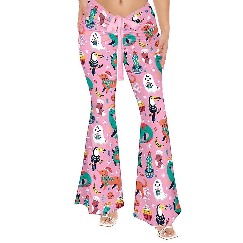 Bell Bottom Pants for Women Feature with Elastic High Waist,Flare Leg,Wid Leg,FLowy,Floral Print,Soft and Comfortable
