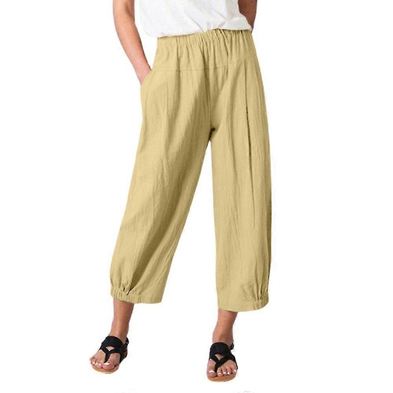 Women Linen-look Elastic Waist Loose Summer Trousers Casual Long Pants-YuJia | Fruugo SG