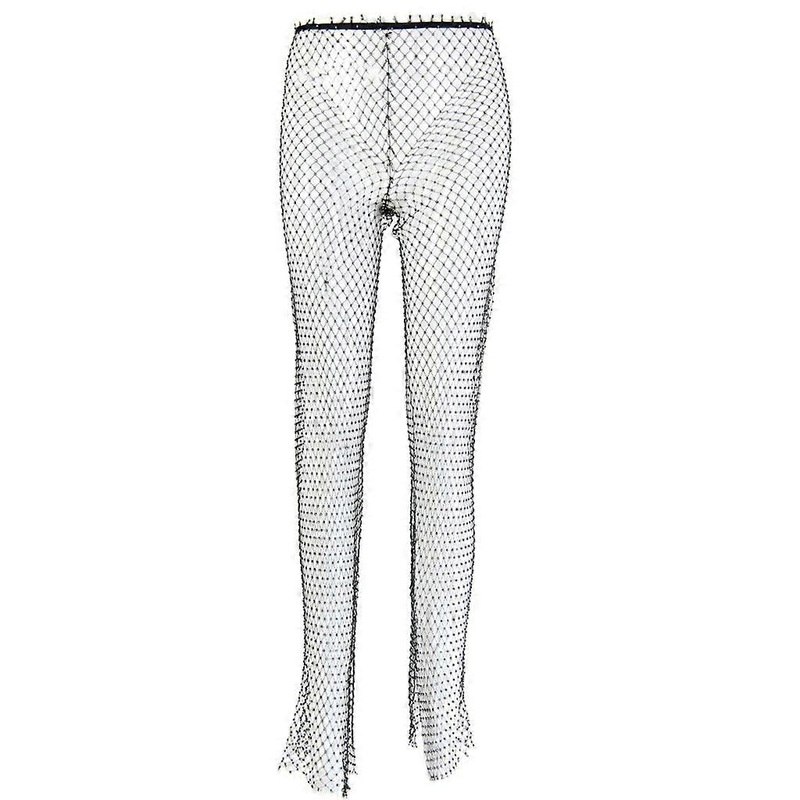 Women Net Grid Open Slit Pants Shiny Imitation Diamond Decor Leggings Tights | Fruugo SG