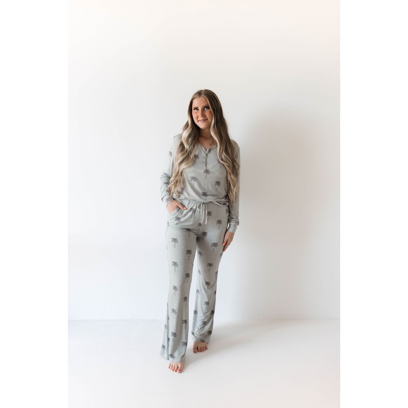 Indulge in ultimate comfort with our Women's Bamboo Pajamas! Made from bamboo, this two-piece set boasts a soft and luxurious feel. The palm tree print adds a touch of summer dreaming to your sleepwear. Experience relaxation and style at its finest with ou