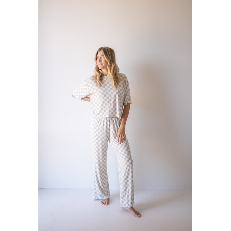 A new staff favorite! This ultra-comfy set is perfect for sleep or lounging around the house. It features a relaxed boxy tee and wide-leg pants for easy, breezy comfort. Dont forget to check out the matching set for your little ones!