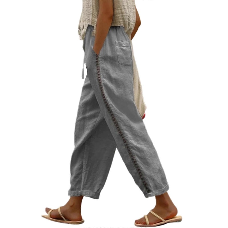 Women’s Casual Loose Wide Leg Linen Pants Summer Highs Waist Drawstring Cropped Pants Trousers with Pockets Streetwears Gray XL | Fruugo SG