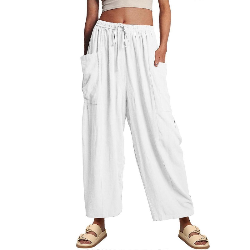 Description Features: Brand new and high quality Featuring elastic drawstring waist, wide leg and convenient pockets, summer casual pants for women. Made of polyester material, these pants are breathable, lightweight, and skin friendly. These pants are sui