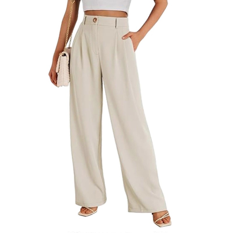 Women’s Elastic High Waist Casual Straight Leg Long Dress Pants Wide Leg Pants Trousers Summer Palazzo Pants Streetwears XL Beige | Fruugo SG