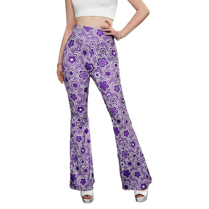 Women’s Floral Print High Waist Flare Pants Leggings Wide Leg Bells Bottom Lounge Pants Trousers Lounge Yoga Pants Gift M Purple | Fruugo SG